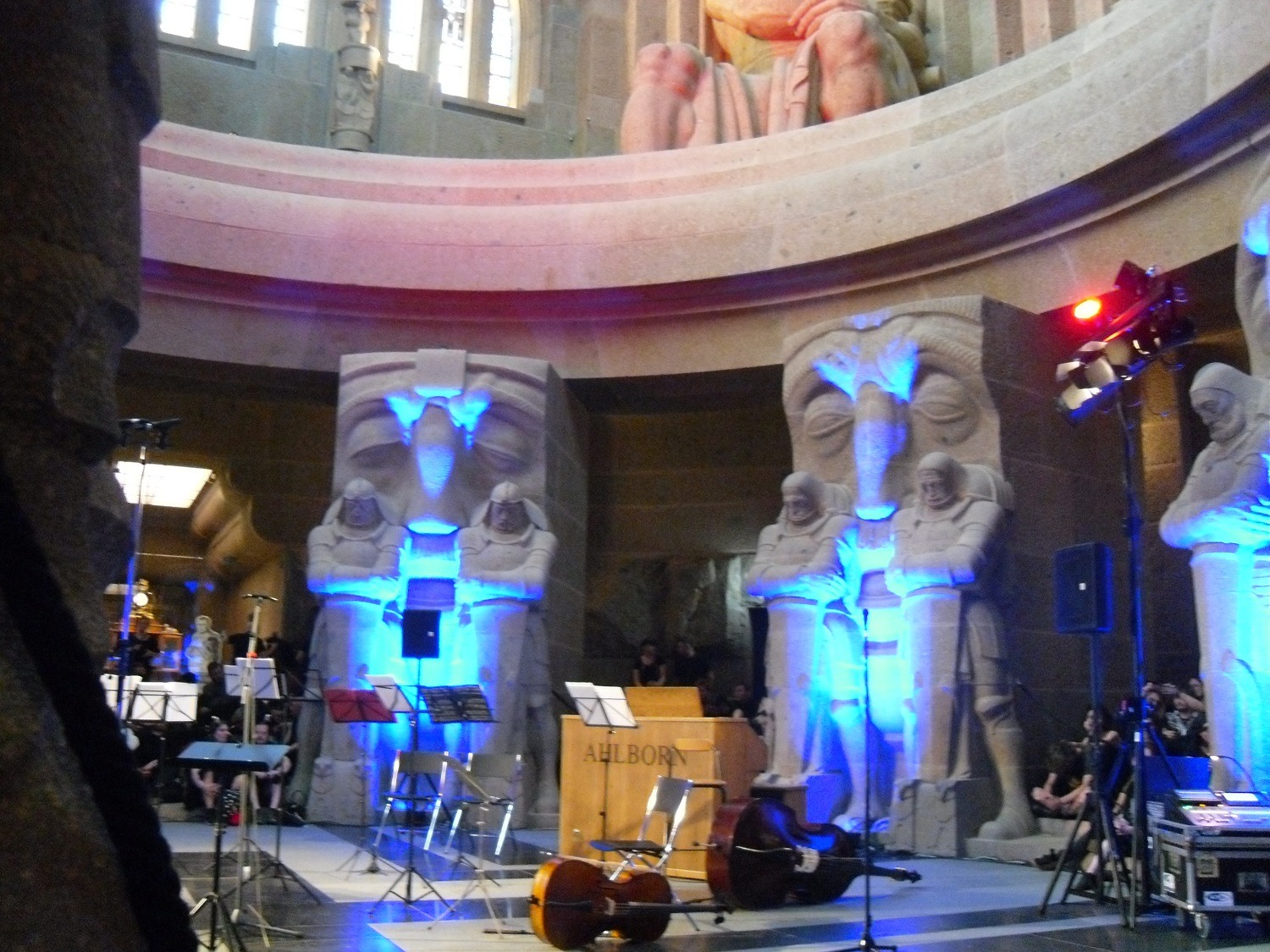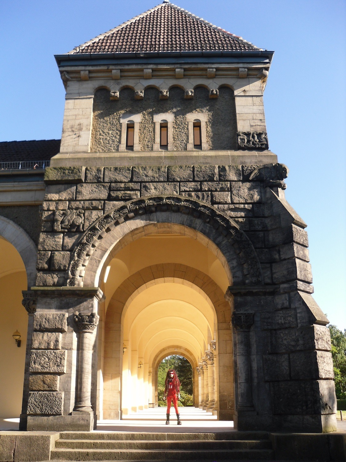 Suddenly we saw giant building and went to it. It was Völkerschlachtdenkmal - one of the biggest monuments in Europe. There was a crowd of Goths and I opened my app to search an event. It turned out that these people wanted to watch a concert in the crypt. An orchestra played Requiem (by Johannes Brahms). We rushed there and had to leave our dishes, which we’ve bought, to security guard. Likely, we’ve got it again after the concert. The crypt looked magnificent, but there were no chairs, that’s why all people sat down on stone steps. The orchestra included a Theremin. There was also a man, who read a poem, when the music stopped. It was awesome unexpected concert in my program.